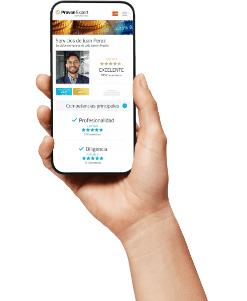 Con ProvenExpert recoges opiniones en minutos y ganas confianza de inmediato.Crea encuestas adaptadas a tu negocio, fáciles de responder desde cualquier dispositivo. En solo 2-3 minutos tus clientes dejan valoraciones auténticas que se convierten en tu mejor carta de presentación. Ya seas asesor financiero, peluquero, pintor o entrenador personal, transforma cada reseña en reputación que vende.